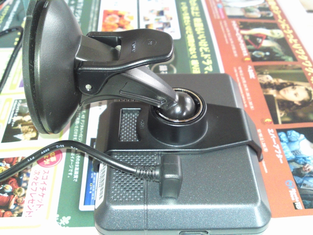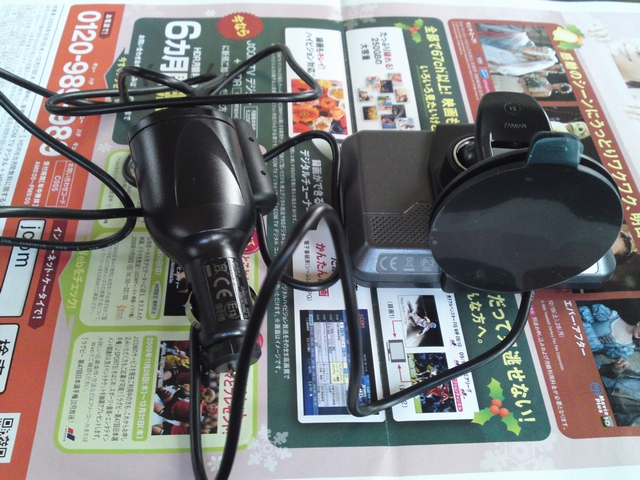 上記が、「出かける前にこれだけ車に持って行くセット」というシガー用電源コードと、吸盤取付ベースとカーナビ本体です。まだ吸盤の保護シールは貼っていませんが、液晶モニターの保護シールは買ったものを約7mm程度カットして貼りました。