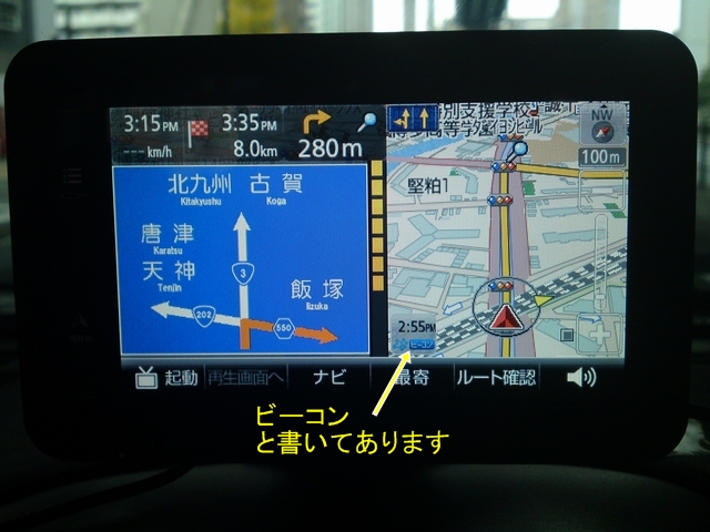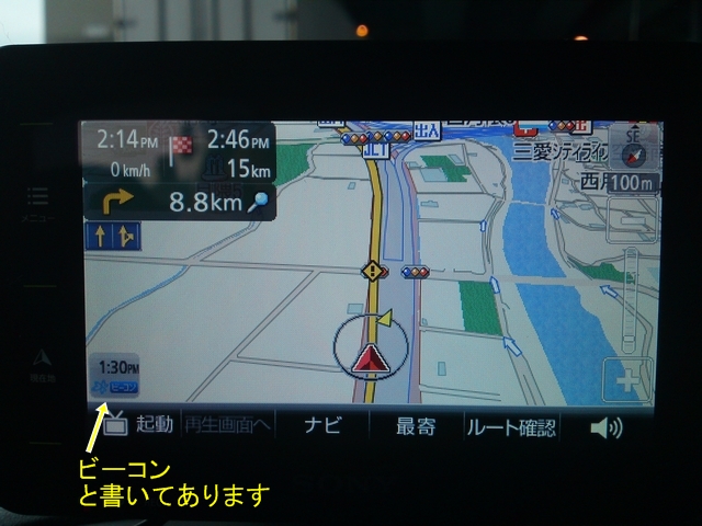 まず、幹線上でナビをルート計算させるとそのまま幹線を選んでいましたので、これがビーコンユニットの影響か?がよくわかりませんでした。