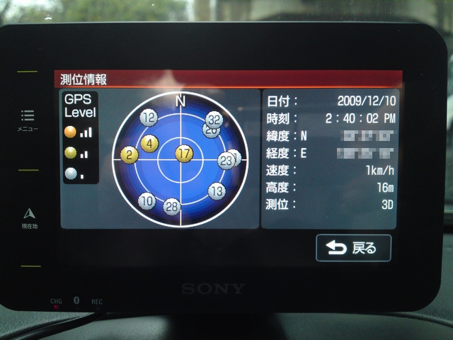 PND(Portable Navigation Device, Personal Navigation Device)という小型の端末でメモリーナビとして、現在15m程度の誤差が最大という感じになるかと思うのですが、最小3m程度でもあるような感じですので、家電の進歩の大きさに驚かされるものです。