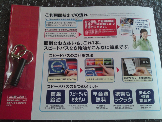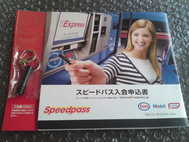 まず、昨日ガソリンを給油しにセルフスタンドへ寄り、給油後に「メール会員のカードを取りに来るように書いてあったのですが・・・それからスピードパスの申込をしたいのですが・・・」と言った。