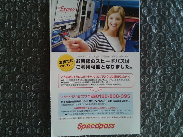 結構時間経ちましたが、12月27日の日曜日に「スピードパスが使えるようになりました」というハガキを郵便配達人が日曜日に届けにきていました。
