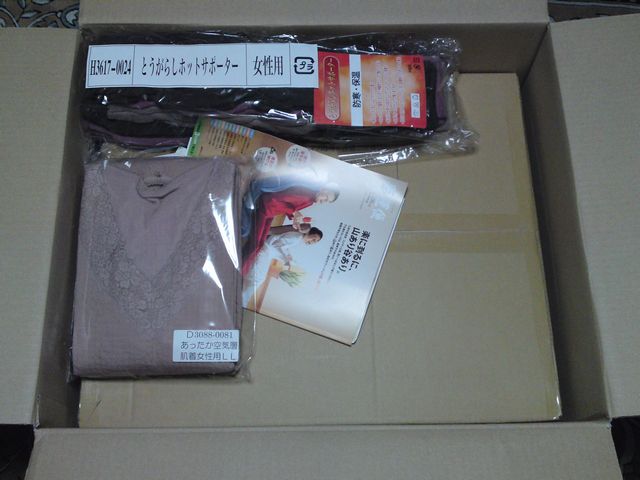 実際に俺も商品を見て、「日本直販の福袋は買って良かった」とお勧めさせていただきますね!膝サポーターとかお年寄りなどが3足でもうれしいと思うらしいのですが、実際は6足入っており、女性用あったか肌着は上だけだと思っていたそうです。たぶんこの辺は、演出というか、買った人が開けて喜ぶように少なめに言われていたのかもしれませんね。